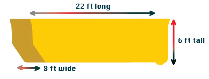 The most common container you’ll see on a jobsite, the 30-yard container is the all-round best bet for construction projects, home builds, commercial remodels, or just large cleanouts. It measures out at 22 feet long, 6 feet high and the familiar 8 feet wide.