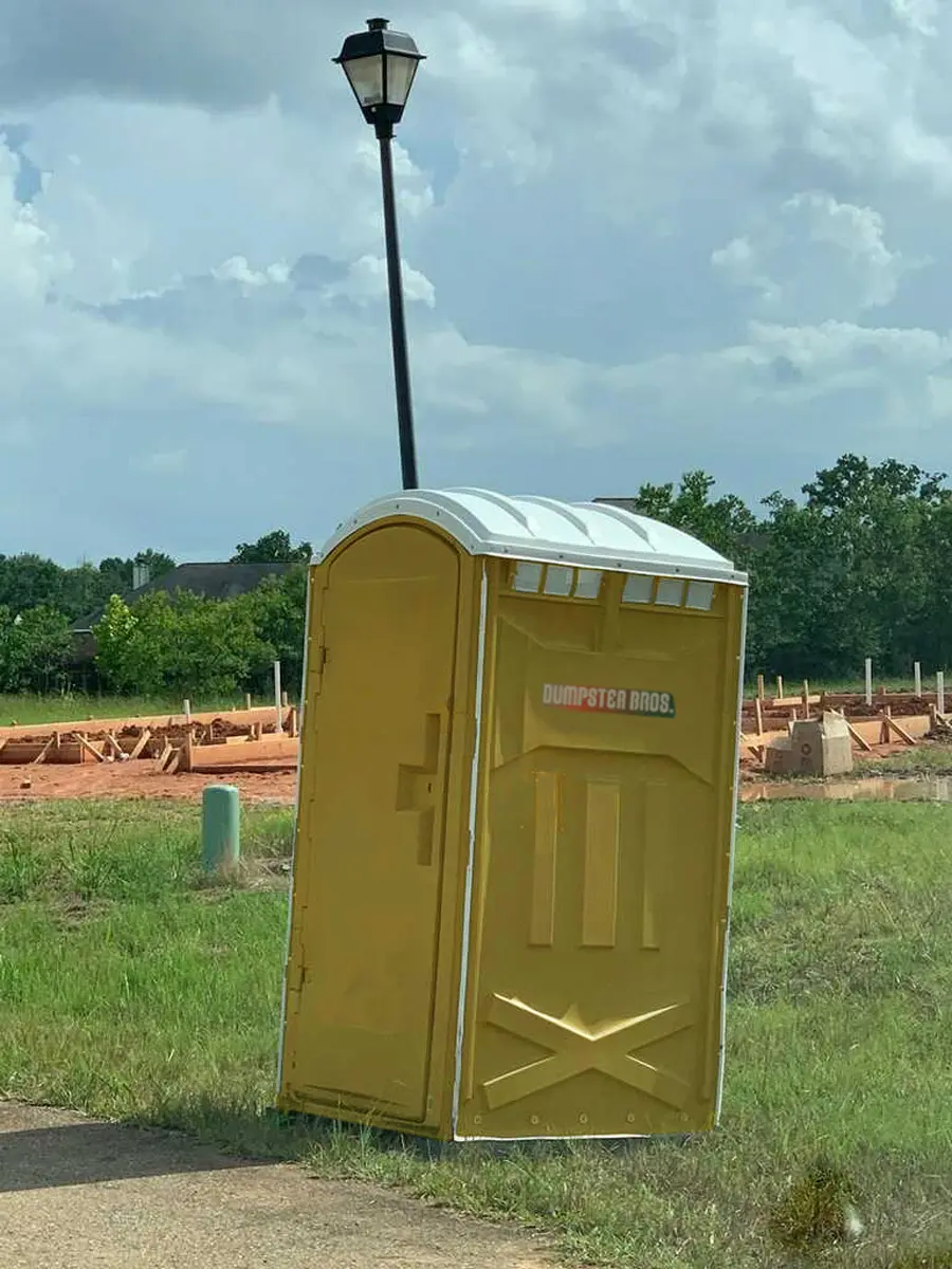 A little known bit of the Dumpster Bros. code is always work in comfort! A portable toilet is an essential on a jobsite, and when your project is over and it’s time to celebrate, it’s needed for events and parties, too. But there are a few things to keep in mind when renting a portable. First is location—the unit needs to be set in an area where the portable toilet truck’s hose can reach it for any needed cleanings. Also to consider is how many units you need for a jobsite or event. The standard ratio for a busy commercial project is ten workers per unit, if they are all working 40-hours a week at the site.